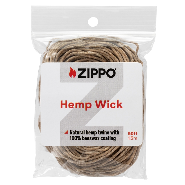 Unwind with Zippo's Hemp Wick and Hemp Wick Lighter Sleeve. Made with hemp and 100% beeswax, the Hemp Wick offers a natural and slow burning alternative to traditional matches and lighters. the 1mm cord is easy to unroll, ignite and extinguish and can be used to add controlled, pinpoint flame to candles and other vessels with its flexible beeswax coating. Available in a 50-foot roll or the Hemp Wick Lighter Sleeve, which contains five feet of Hemp Wick in a portable sheath that's designed to fit over your classic Zippo windproof lighter (sold separately). * not compatible with Slim, Armor or 1935 Replica lighters.