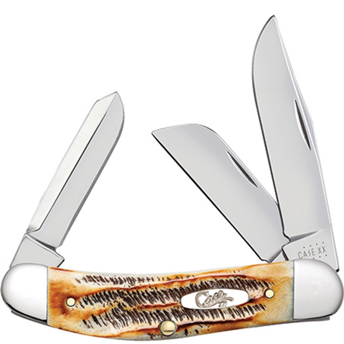 Made to look beautifully worn, this genuine bone handle’s honey and amber tones are accented with special jigging —and hand-flamed —to look and feel like authentic stag antler. Each knife features Tru-Sharp™ surgical steel blades and the Case Oval Script Shield. Secondary ‘6.5’ blade tang stampings remind you these knives are extra special.